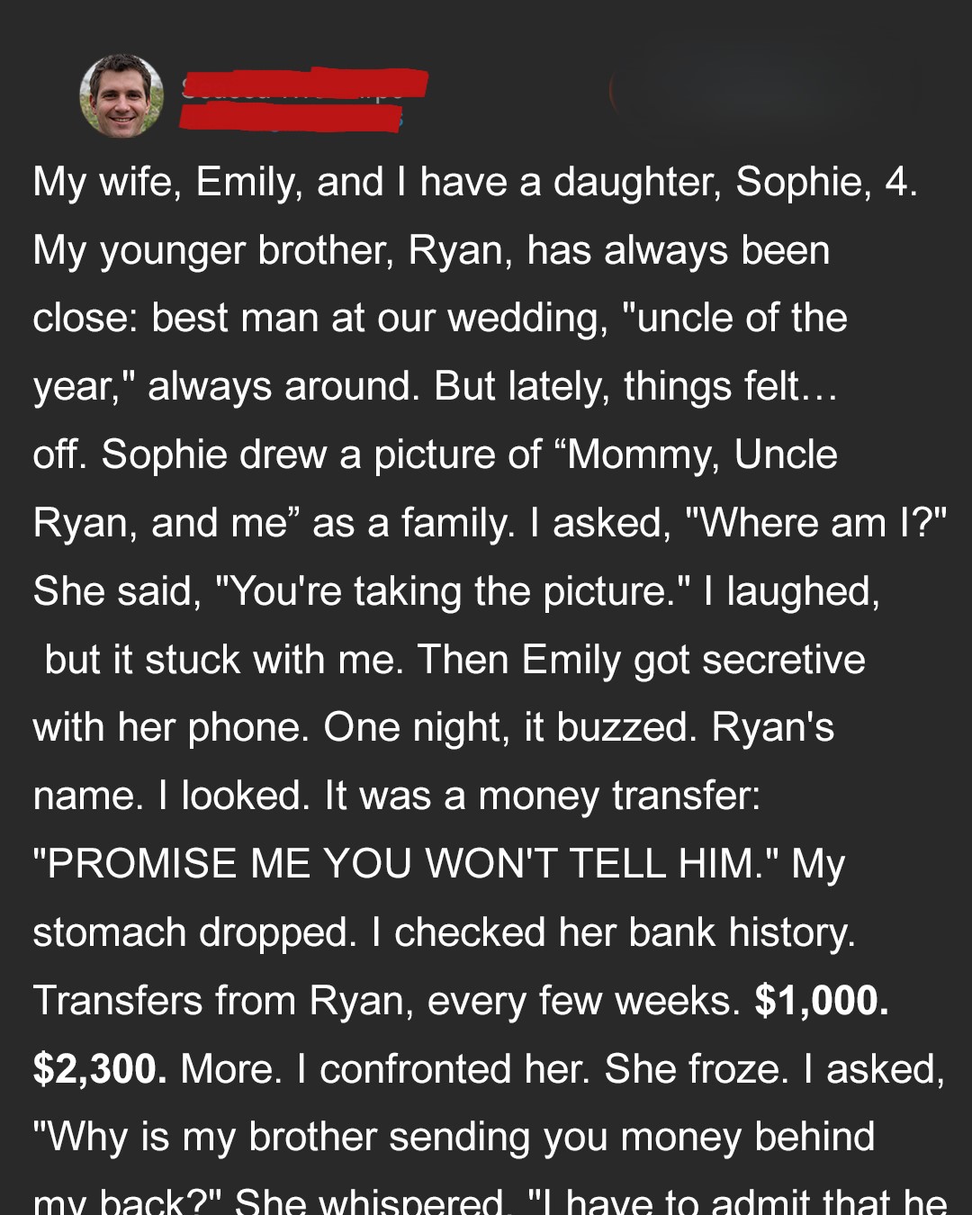 There was screaming, accusations, and tears. But through it all, Emily refused to explain what was really going on. She kept saying it wasn’t her place to tell me, that she’d promised to keep quiet, that I had to trust her.