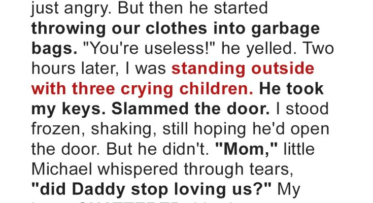 My husband threw me and our three children out with nowhere to go and no one to turn to. Cold, scared, and desperate, I knocked on the first door I saw and asked for work. I had no idea that moment would change everything—for me, my kids, and the man behind that door.Being a mother of many children was hard. Being a mother of many children with no support was ten times harder. There were days I felt like I was carrying the whole world on my shoulders.