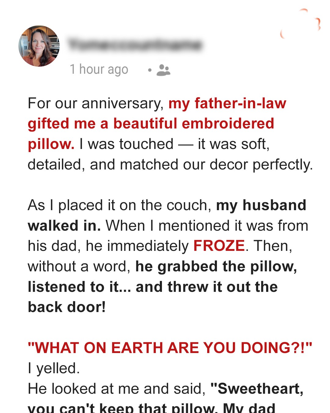 “Sweetheart, we can’t keep this pillow!” he said.