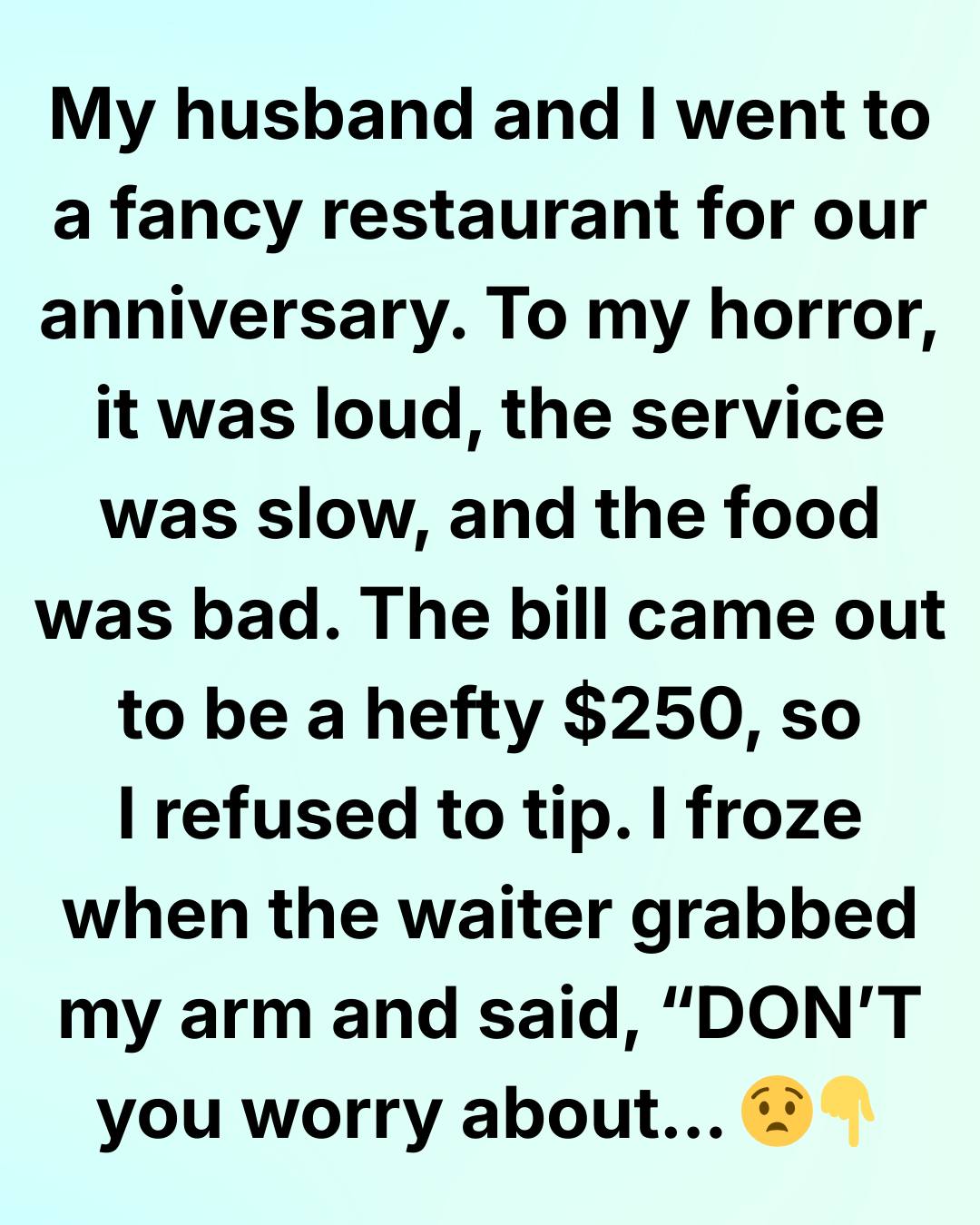 She didn’t just set the desserts down. Her hand, instead of reaching for the table, darted out and grabbed my arm. A tight, almost desperate grip. My smile faltered. My partner looked up, an eyebrow raised, a flicker of irritation crossing his face.