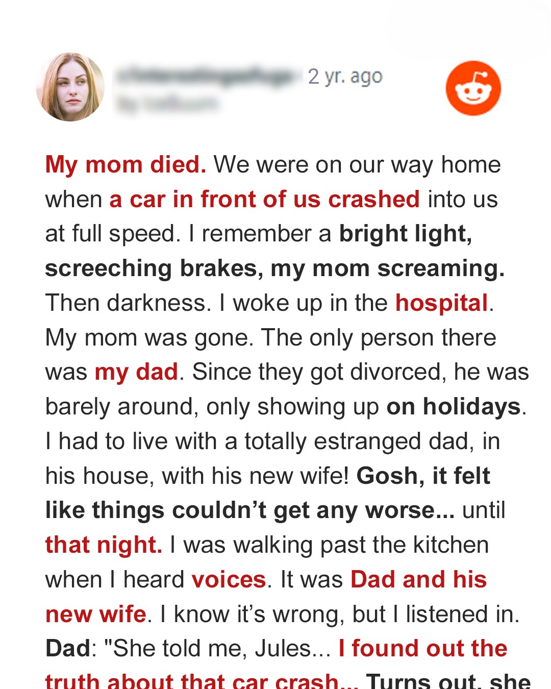 “I didn’t hide it, Dad,” I say. “Not at first. I genuinely didn’t remember what happened. We were in the car, there were headlights, and then the next thing I remember was being on the ground with Mom. But the memories have been coming back… It was a mistake.”