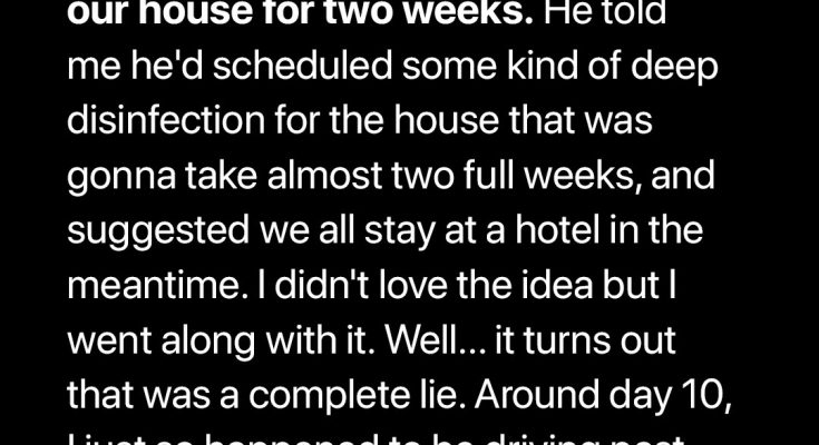 My husband sent me and the kids to a hotel for two weeks, saying the house had rats and needed disinfection. I believed him… until I drove by and saw a woman inside. I was shaken, but nothing prepared me for what he confessed next.Mark and I weren’t perfect, but we worked on us, holding it all together. We had our routines—morning traffic rants, Friday takeout, a shared Netflix account, and two little munchkins, Emma and Noah, four and six… who still believed their dad could do no wrong.