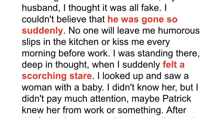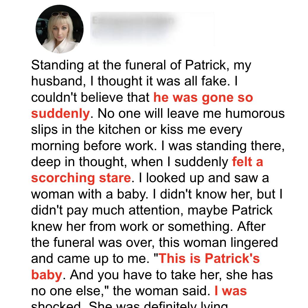 Nancy looked at the final traces of her husband’s funeral service. She couldn’t believe Patrick was gone. He had died in a car accident. It had been a week, but she could still feel him around her. How could he be dead?With a heavy heart, she headed toward the cemetery’s exit, telling herself she had to start figuring out the rest of her life.Suddenly, an older woman with a baby blocked her path.“Are you Nancy?” the woman asked while the baby in her arms cried.Nancy didn’t recognize her. Who was she?“I am. Who are you?” Nancy replied.