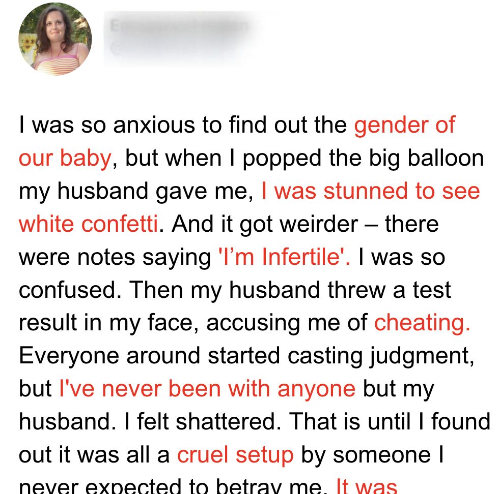 At John and Anne’s gender reveal party, an unexpected note turns their celebration into a battleground of accusations, challenging their marriage and trust. Yet, an unexpected revelation from a close friend emerges, disrupting the turmoil and reshaping their story in unforeseen ways.Anne stood amidst the vibrant decorations, her heart fluttering with anticipation, as friends and family gathered in the backyard for the much-awaited gender reveal party. Laughter and excitement filled the air, swirling around the expectant couple.
