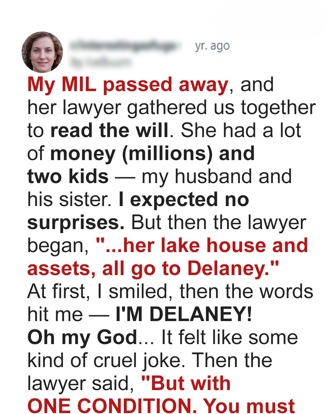 My MIL Left Me Everything Instead of Her Own Children, But My Inheritance Came With a Trap — Story of the Day