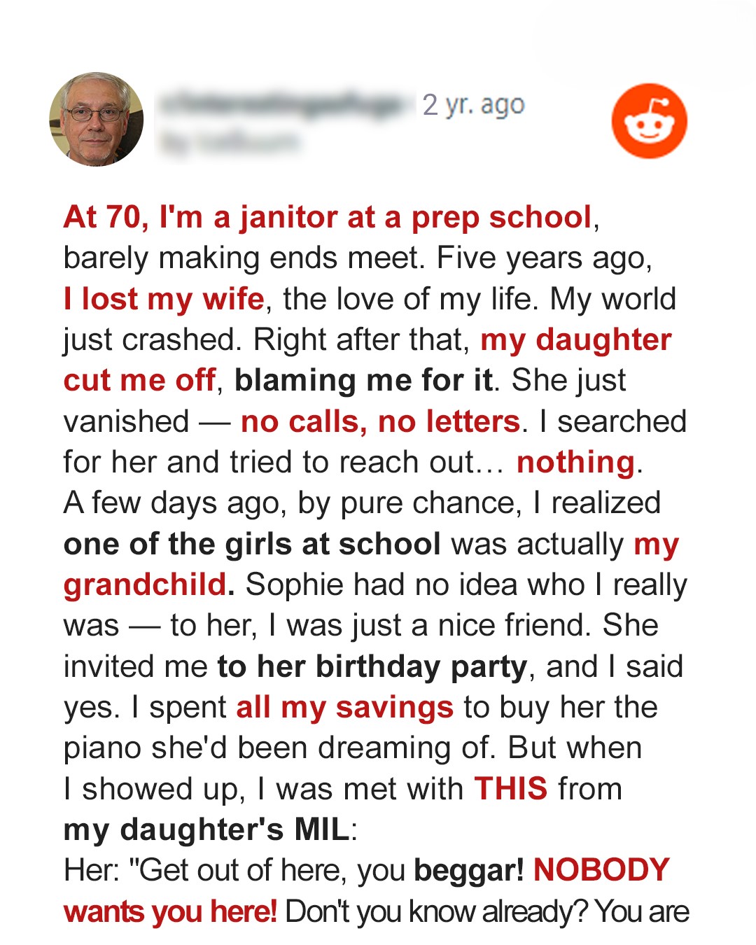 I spent the little I had just to see my granddaughter smile on her birthday. But before she even saw me, her other grandma called me a beggar and wanted to have me thrown out, like I didn’t matter at all.Five years.That’s how long I had been living in silence…Silence after Linda, my wife.Silence after Emily, our daughter.