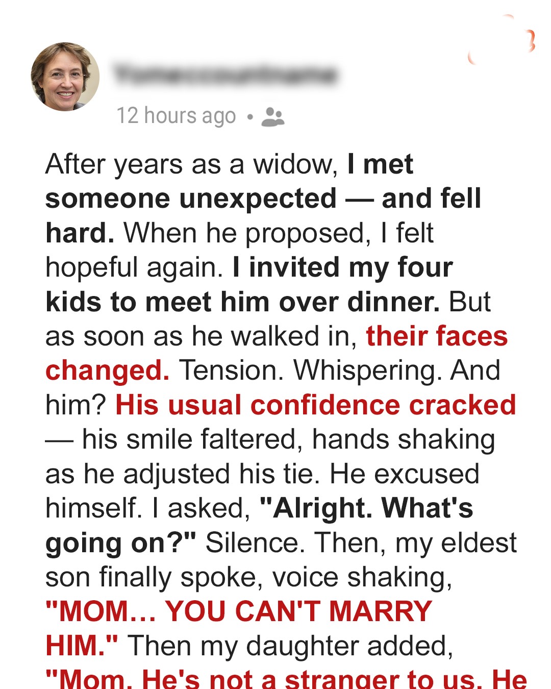 “Mom… you can’t marry him,” he said.