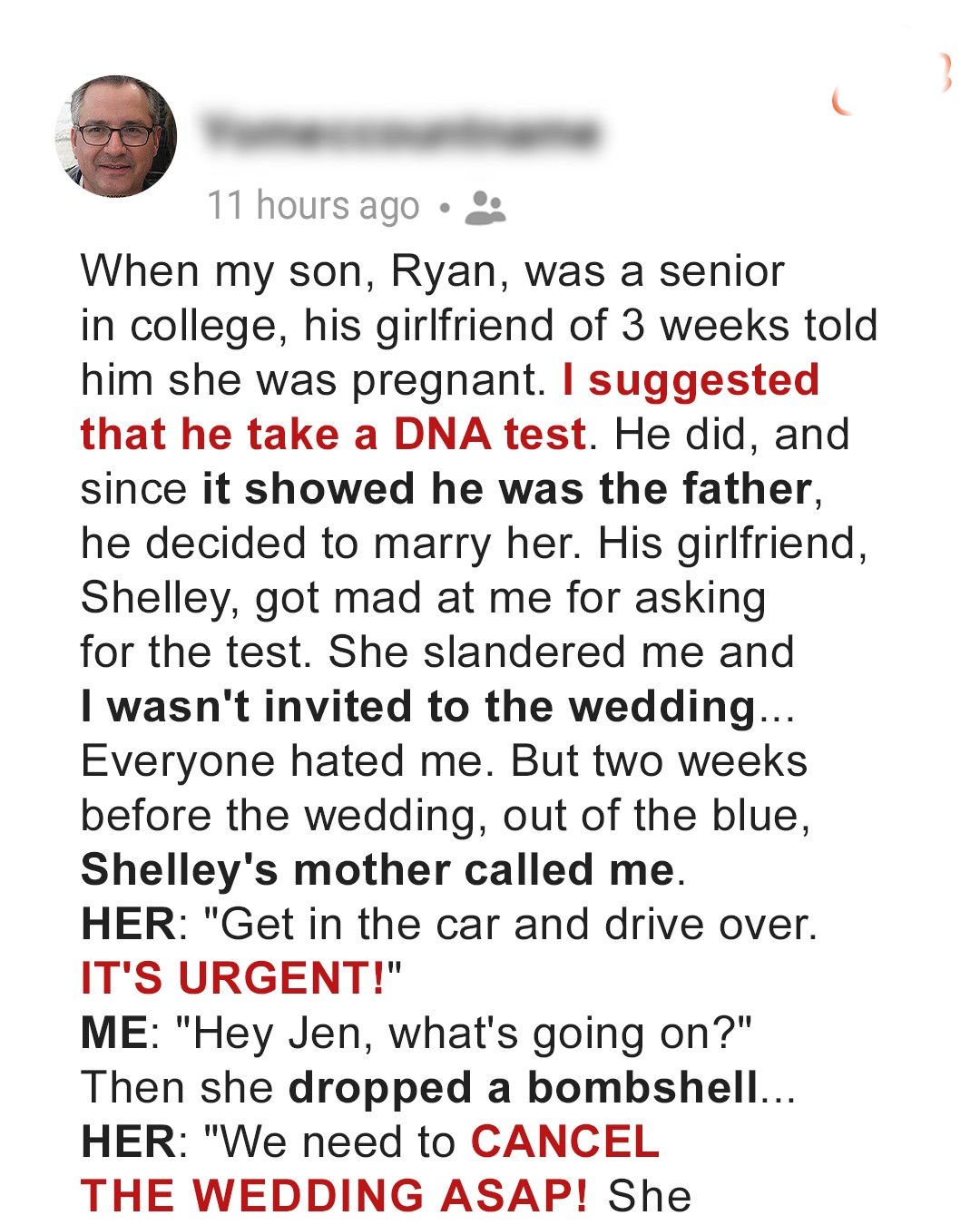 And then she dropped a bombshell on me. Her words were rushed, urgent, and they carried a weight that I couldn’t immediately understand. “We need to cancel the wedding,” she said, a statement so bold and out of the blue that it momentarily took my breath away. “I found out Shelly really was lying all this time. I can’t allow your son’s life to be ruined like this.”