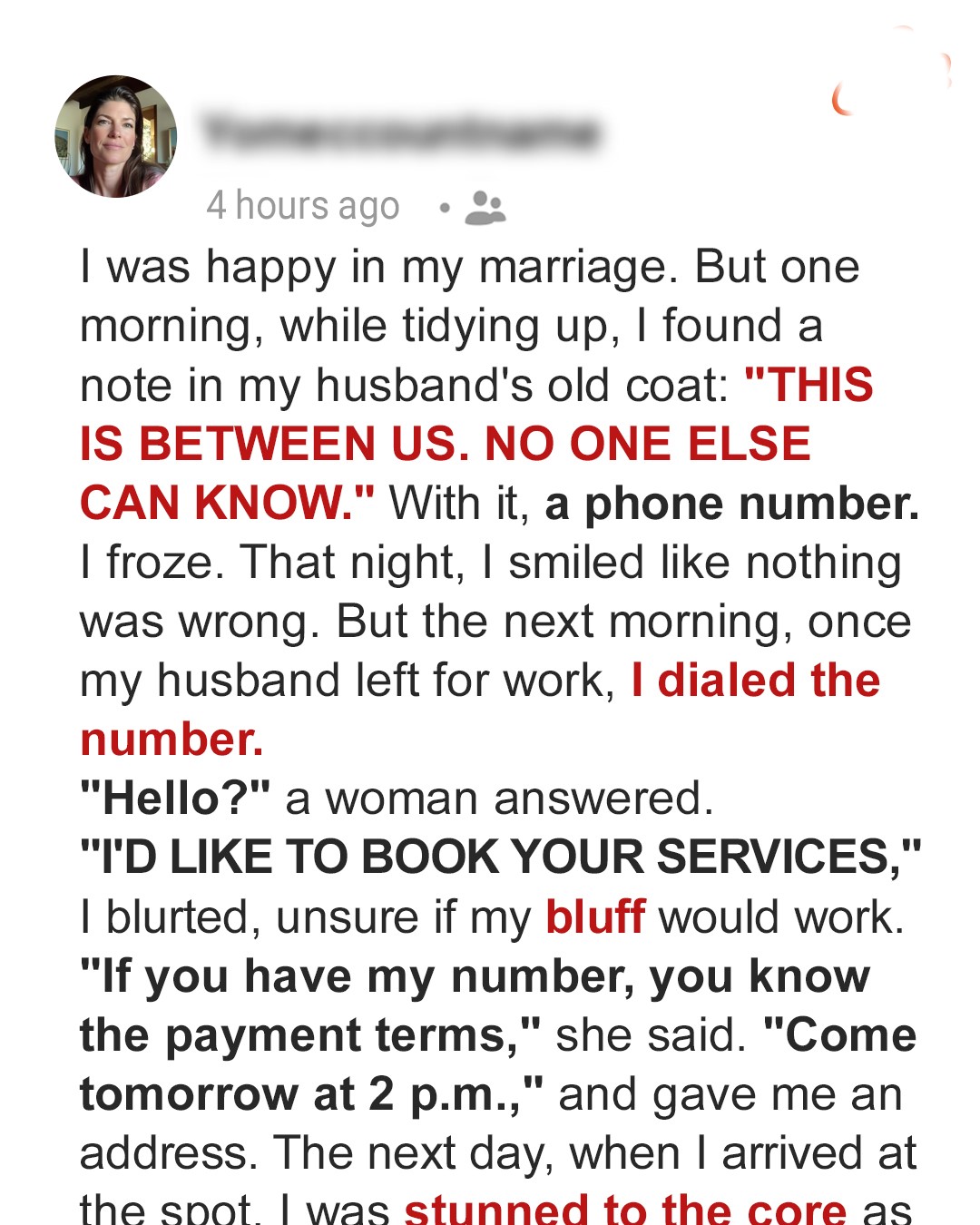 When I found a mysterious note in my husband’s old coat, its cryptic message sent my mind reeling. What followed was a journey of doubt, suspense, and a shocking revelation.The house was alive with the sound of laughter. My son, Dylan, sat on the floor, lining up toy cars in a neat row, his little tongue sticking out in concentration. Next to him, his sister, Ella, twirled in her princess dress, spinning so fast that the hem of her skirt fluttered like a butterfly’s wings.