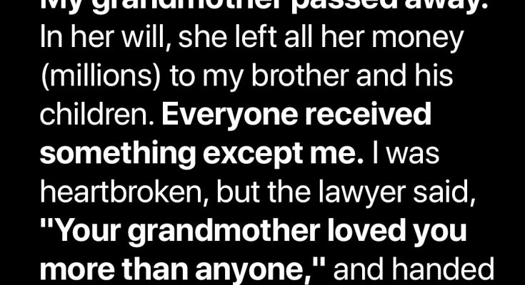 “Mr. White, according to your grandma’s will, you’ll be getting her house. Here are the papers. Please sign them.”