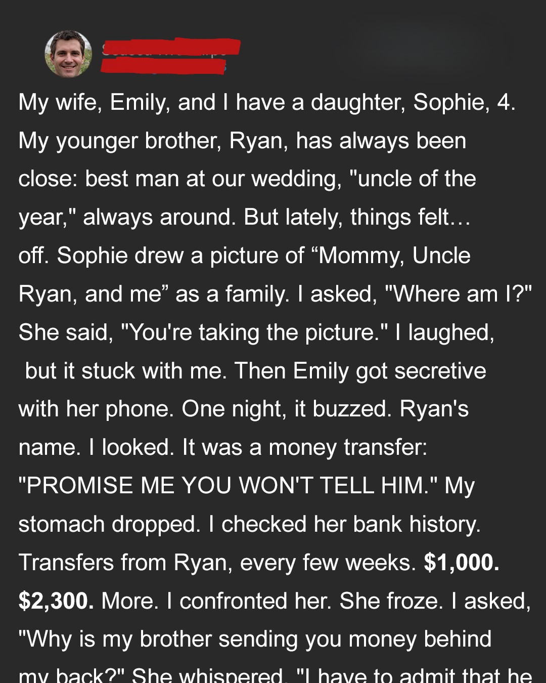 There was screaming, accusations, and tears. But through it all, Emily refused to explain what was really going on. She kept saying it wasn’t her place to tell me, that she’d promised to keep quiet, that I had to trust her.