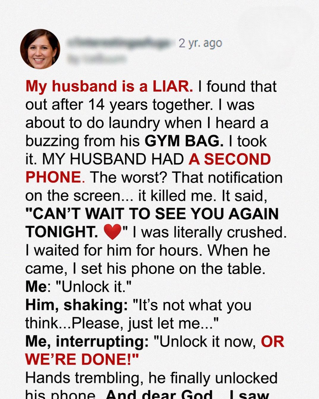 I had never had a reason to doubt him before. Not once in fourteen years of marriage. Not in sixteen years of love, trust, and building a life together. But suddenly, my mind felt like a crime scene, searching for clues I had never thought to examine before.