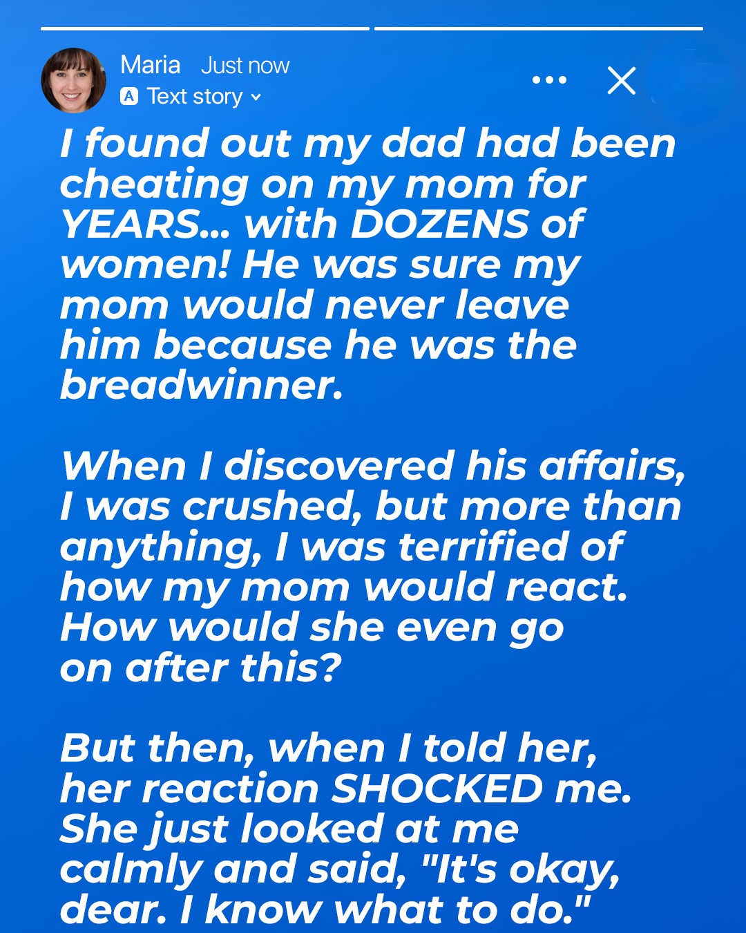 I didn’t know what to do. Should I tell her? Could she even handle it? She depended on him, after all. He was our provider and protector. What would she do if she knew? And yet, I felt like she deserved to know.