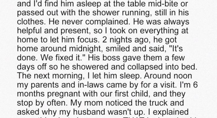 Before bed, he knelt in front of me, kissed my stomach gently, and whispered something to our daughter. I didn’t catch what he said.