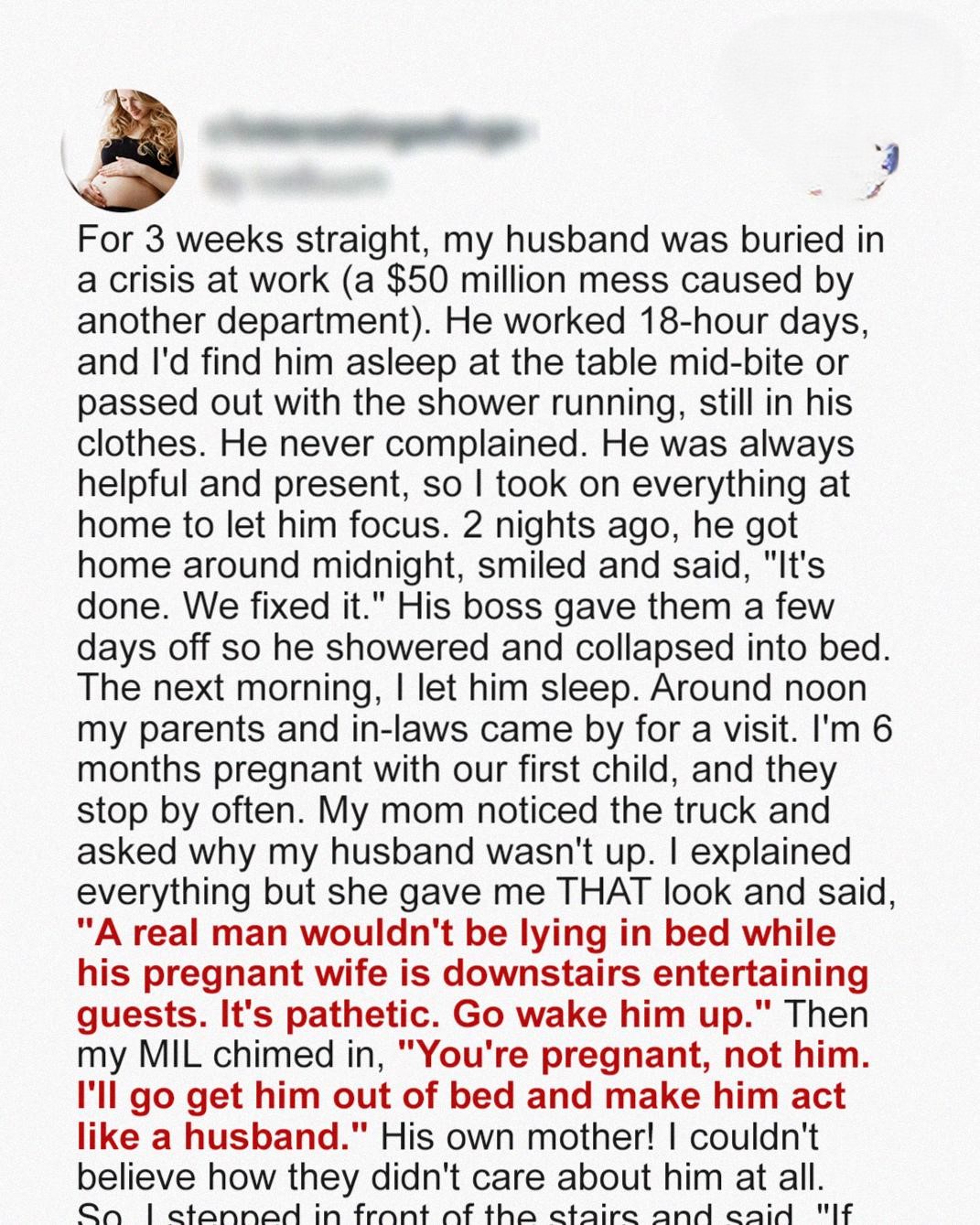 My Parents and In-Laws Came Over While My Husband Was Asleep – Then Demanded Something I Couldn’t Believe