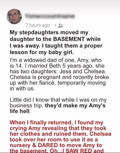 While I was gone, on top of how Jess and Chelsea constantly crossed Amy’s boundaries, the pregnant stepsister decided to ignore my decision by taking over my daughter’s room! She and her sister moved Amy into the basement behind my back!