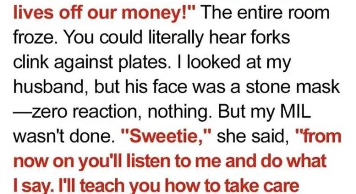 I glanced at my husband. He didn’t speak. His eyes were wide, his jaw tight, but he didn’t say a word. I felt myself sinking. I wanted to disappear.