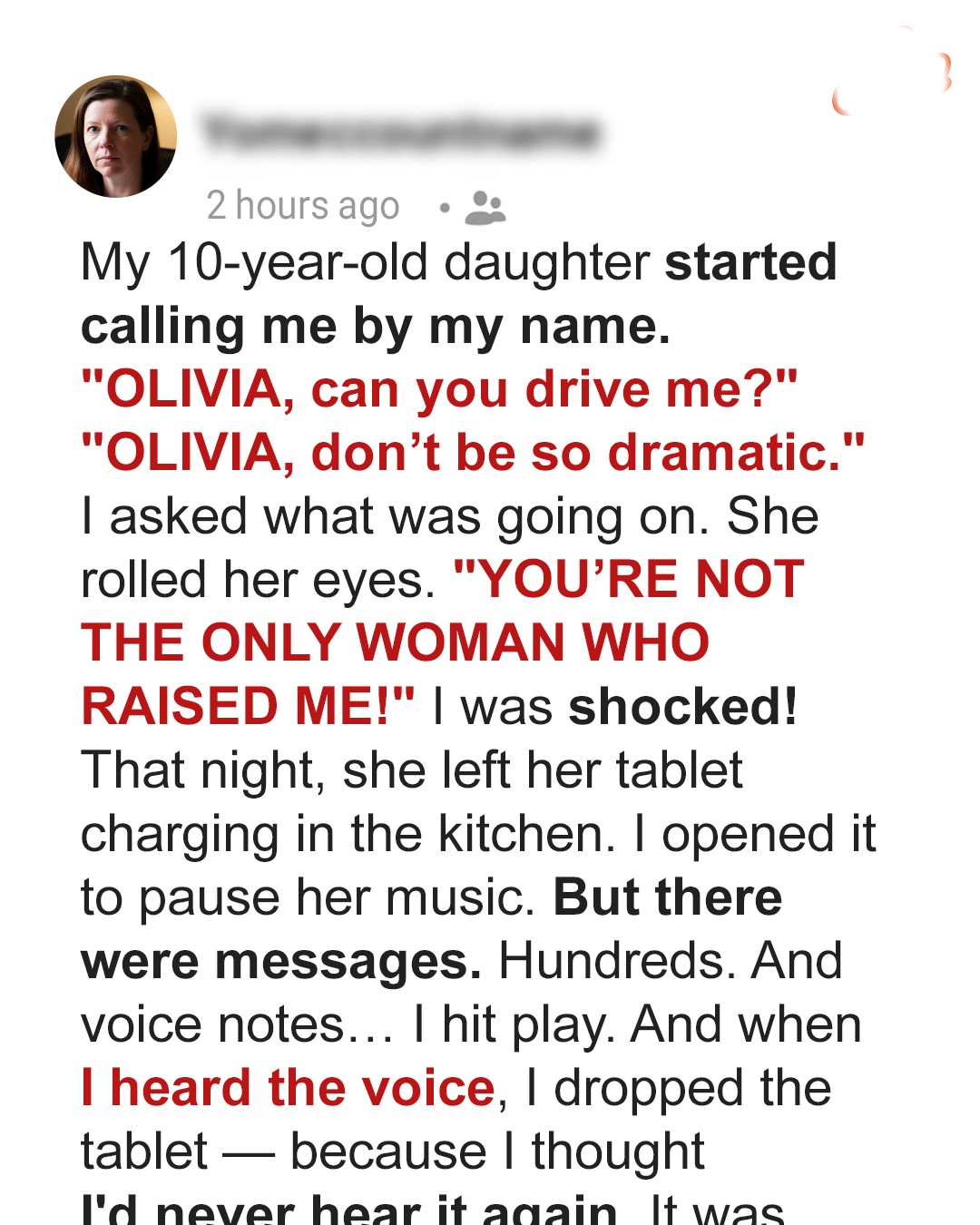 “I’ve noticed you’ve been calling me Olivia lately… not Mom. Just wondering what’s going on.”