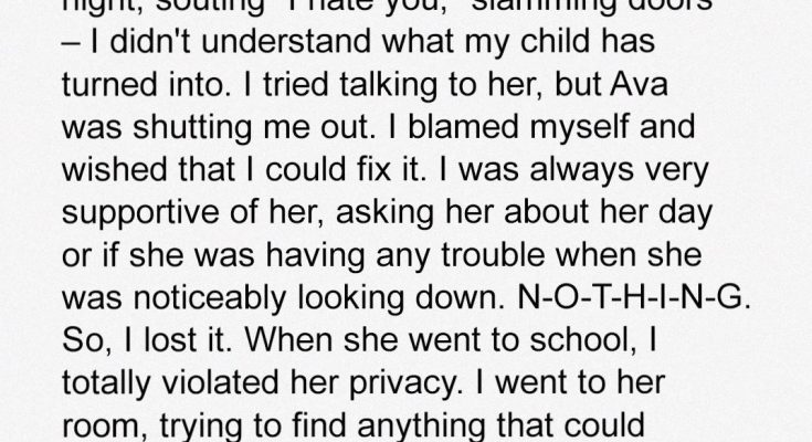 I thought my daughter’s rebellious behavior was just a phase, something every teenager goes through. But when I found her journal, I uncovered a shocking truth that shattered everything I believed about her life. The secrets she’d been hiding were far deeper than I ever imagined.Is it normal that I’m afraid of my own daughter? Don’t get me wrong, not in any creepy way. It’s just that Ava had entered that rebellious teenage phase.