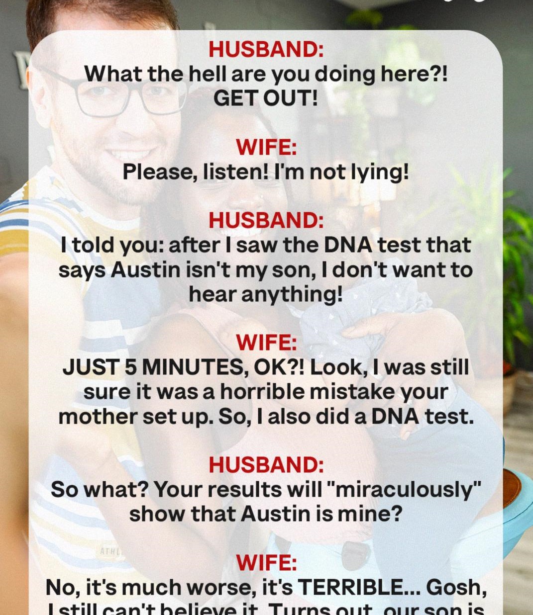 It was a DNA test result. For Paul and Austin. The probability of paternity was zero. I just sat there, frozen. It felt like a joke, some sick joke.