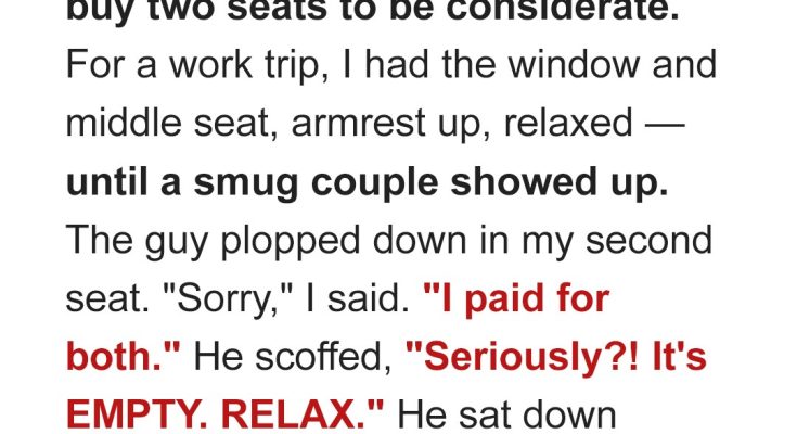 The guy—I mentally dubbed him Mr. Entitled—did a theatrical double-take. “You bought two seats? For yourself?”