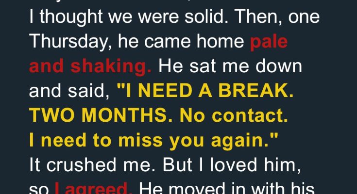 “A break,” he said. “Just… two months. No contact. I’ll stay at Mom’s. I need to figure things out.”