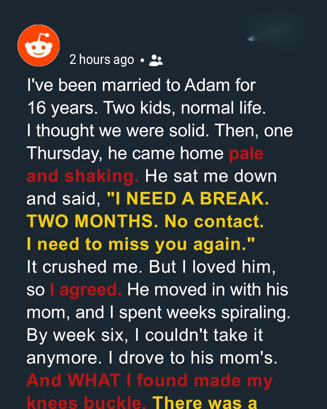 When my husband asked for a two-month break after 16 years of marriage, I was sure another woman was involved. But the truth I uncovered left me sobbing on the kitchen floor and changed everything I thought I knew about love.I never thought I’d be writing something like this. But after everything that’s happened, I just need to get it off my chest.