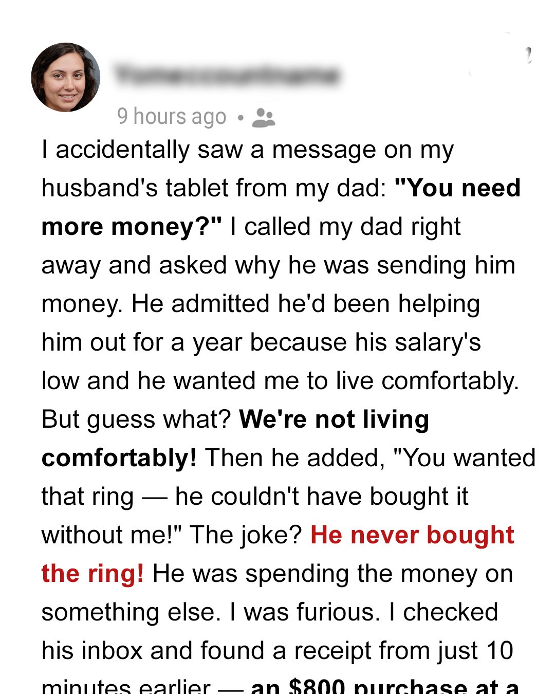 “Hun,” William said tenderly, “what goes around comes around. God’s justice moves slowly but it never fails!”