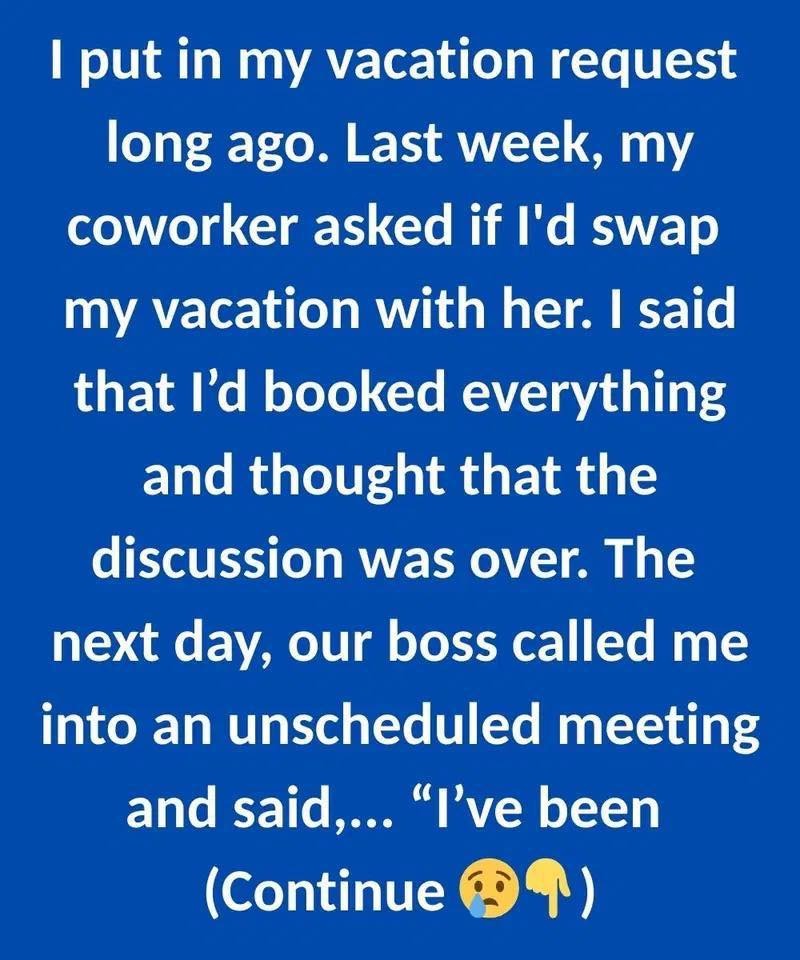 Over the next several days, I resolved to embrace that conviction. I reached out to my direct supervisor and requested a one-on-one meeting to express my thoughts clearly. I explained that while I understood the challenges Lisa was facing, my vacation was not a tool to be used as a bargaining chip. It was a hard-won opportunity—a reward after years of relentless work and personal sacrifice. I expressed that I valued every minute of it and that I expected my time and my choices to be respected, just as I respected the choices of my colleagues, regardless of their family status.