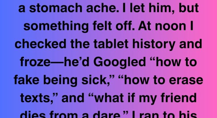 I told myself to stay calm. I didn’t want to scare him off or make him shut down. “I saw what you were looking up,” I said quietly. His eyes flew open, and in that moment, he looked so small. Not twelve. Just a scared little boy.