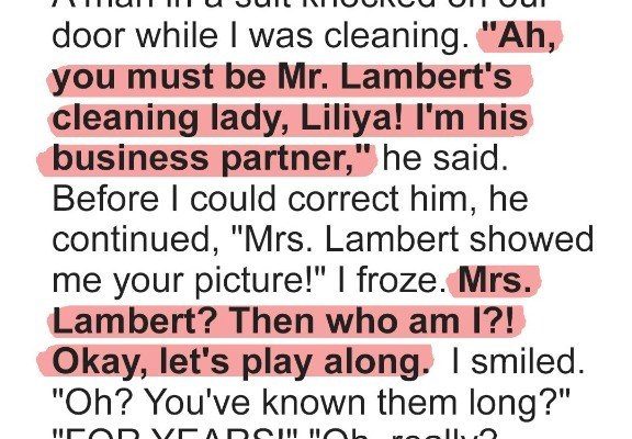 I had no idea who this ‘Mrs. Lambert’ was—but if he thought I was someone else, I figured I’d roll with it.