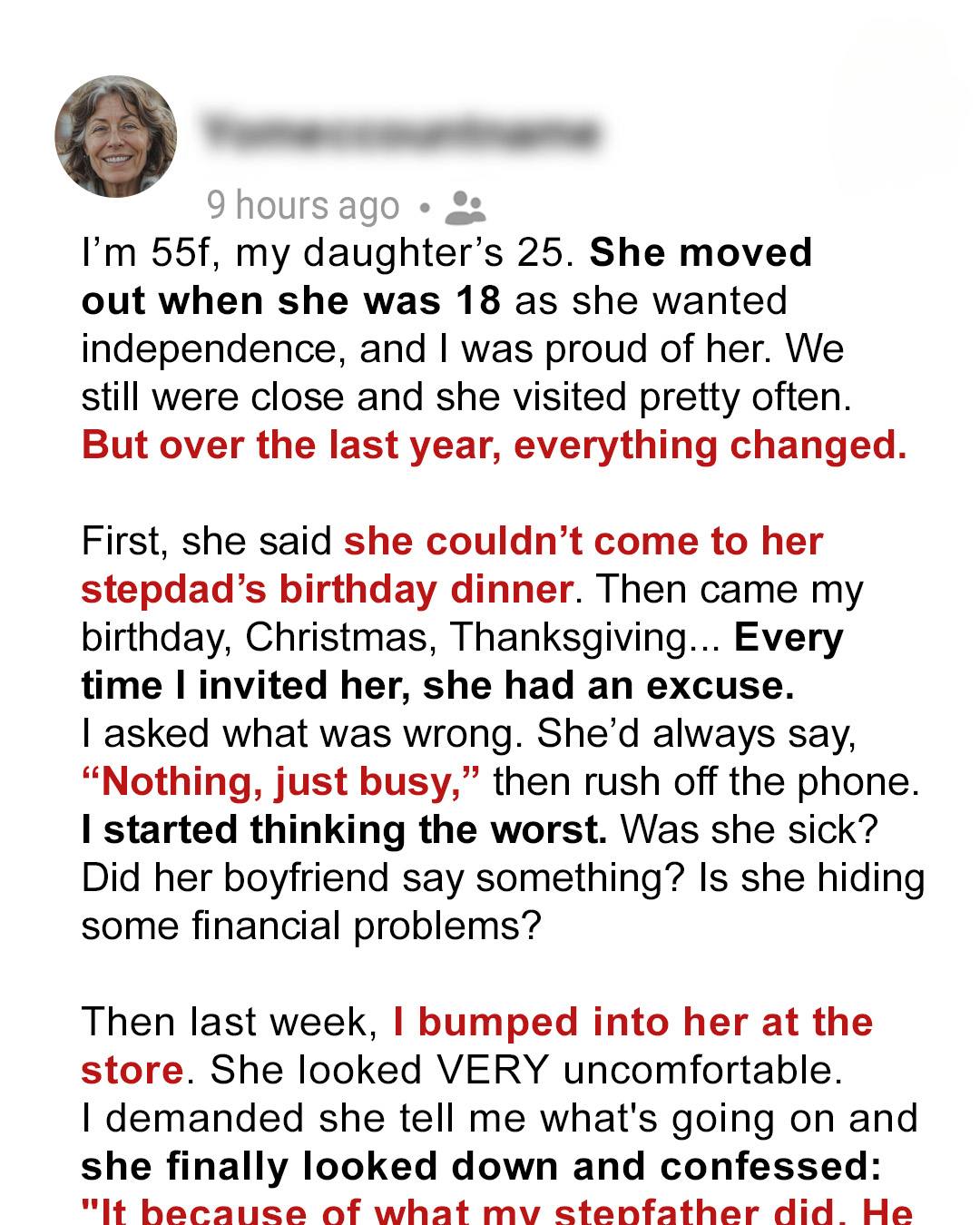 Now she visits often—sometimes with takeout, sometimes just to talk. We bake, we laugh, we grieve, and we heal. I chose my daughter, finally and fully. And in doing so, I chose the kind of mother I should’ve been all along.