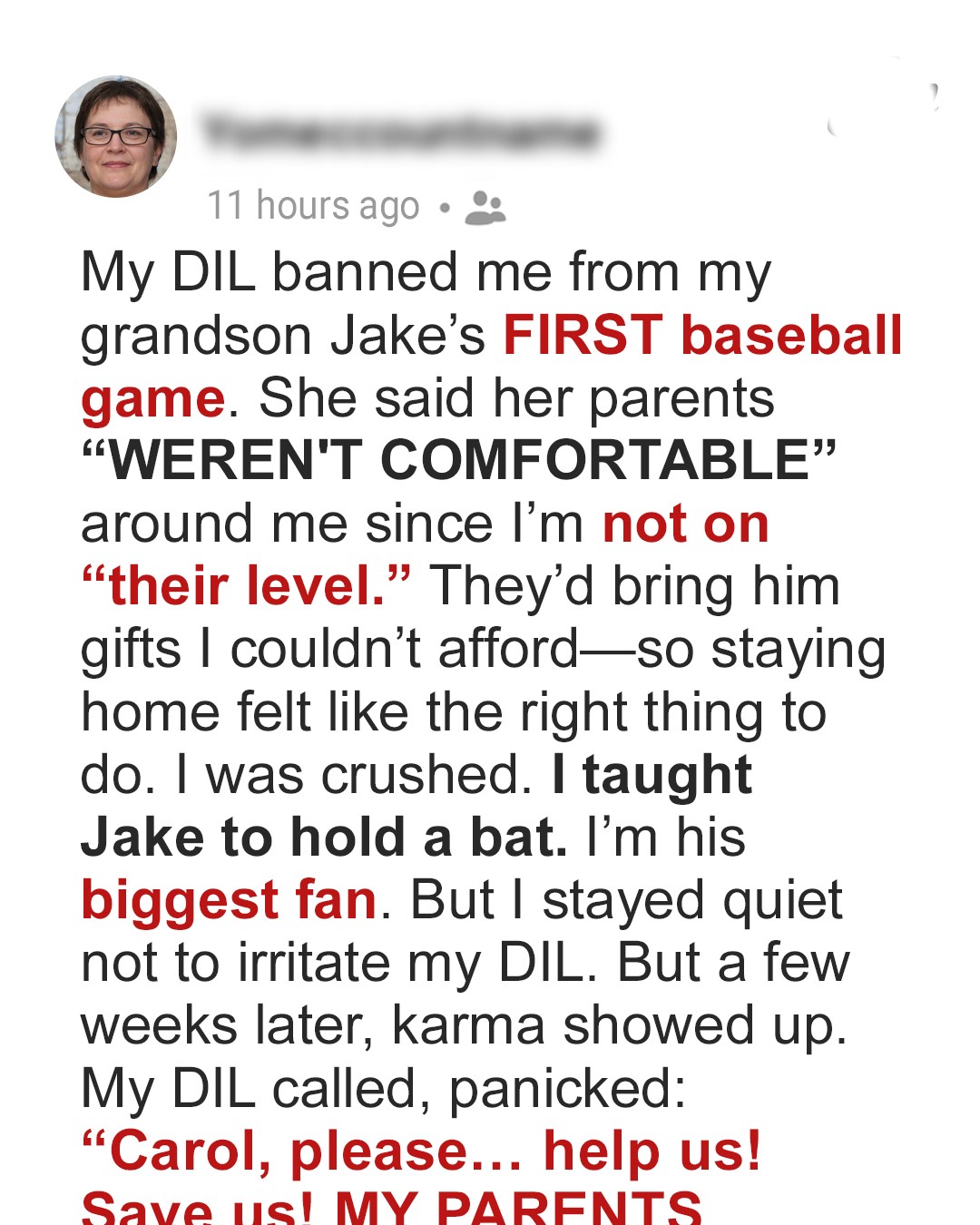 I’d been counting down the days to my grandson’s first baseball game, bursting with pride and excitement. But just before the big day, my daughter-in-law told me I couldn’t come. At first, I believed her excuse. Then I found out the real reason, and I’ll never forget how it made me feel.My world changed five years ago when my husband Frank’s heart gave out during our morning walk. One minute we were discussing our retirement plans, the next, I was watching paramedics shake their heads.