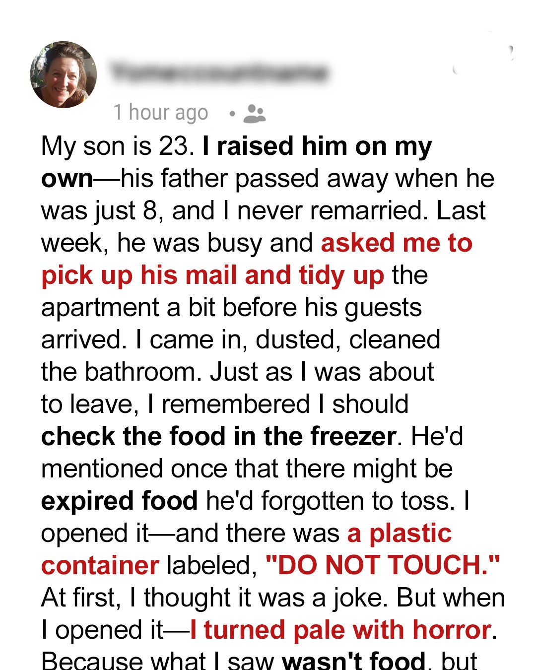 I Found a Plastic Container Labeled ‘DO NOT TOUCH’ in My Son’s Freezer – And I Really Wish I Hadn’t Opened It