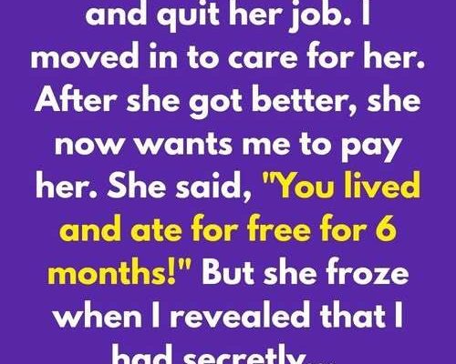 I moved in to care for her. After she got better, she now wants me to pay her. She said, “You lived and ate for free for 6 months!”