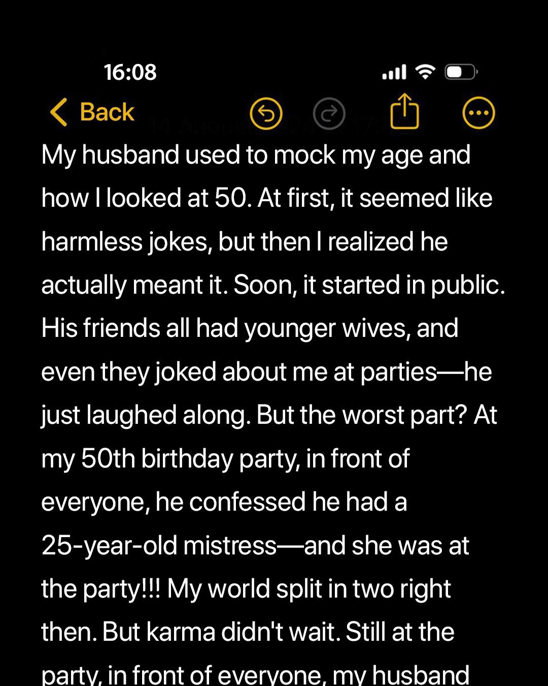 At fifty, I felt stronger and healthier than ever. For five years, I had poured my heart into creating a fitness and wellness program for women over 40 — to help us embrace aging with pride instead of fear. My 50th birthday was the perfect moment to finally share it with the world.But that night, my husband, Travis, destroyed everything.