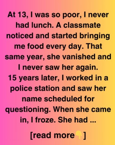 Every every day over a period of a few weeks, she brought something with her. a smile, sandwiches, and sometimes a hard-boiled egg or fruit, and nothing but a grin. Nobody ever asked me why. I didn’t want to make it a failure. In no way did she make a big deal out of it. At some point, she was present. After then, it was gone. The teachers didn’t go into much detail; all they said was that her family had relocated abruptly.