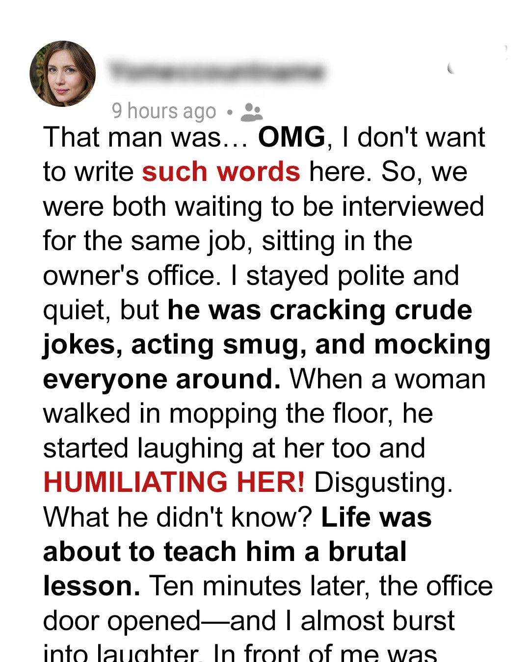 It was supposed to be a standard job interview — nothing fancy, just a shot at something stable. I dressed the part, showed up early, and waited like everyone else. But what unfolded in that office was nothing I could’ve prepared for.Have you ever walked into a room and immediately knew you were about to witness something wild? That was me, last Tuesday.I arrived 15 minutes early for the interview. The lobby was quiet, and sterile, with that faint scent of fake citrus. I sat down, resume folder neatly in my lap, heels crossed at the ankle like my mother taught me. That’s when I noticed him.