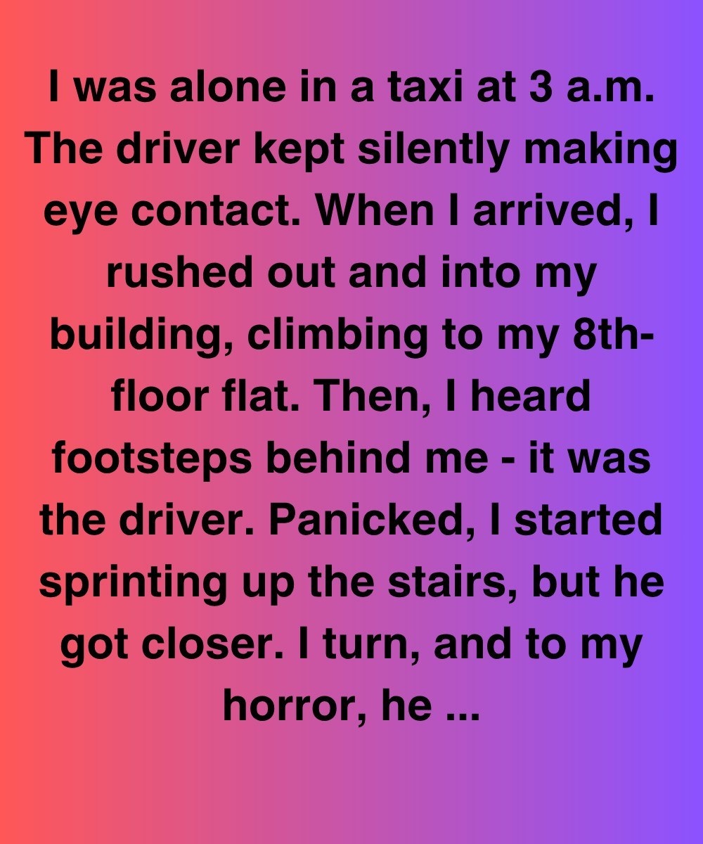 I was alone in a taxi at 3 a.m. The driver kept silently making eye contact. When I arrived, I rushed out and into my building, climbing to my 8th-floor flat. Then, I heard footsteps behind me—it was the driver. Panicked, I started sprinting up the stairs, but he got closer. I turn, and to my horror, he grabs my wrist.“Wait!” he gasps, panting. “You dropped this.”In his hand: my wallet.I just stood there like a fool, my heart pounding in my ears. I’d been clutching my pepper spray, thumb on the nozzle, ready to scream. But now I just felt… dumb. He held the wallet out like it was some peace offering.