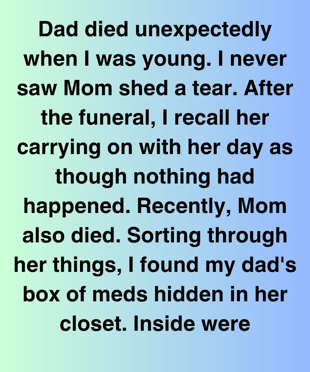 She trailed off. I knew.There it was again.Mom didn’t believe him. Or didn’t care. Or worse.But I wasn’t going to drag this through courts. There was no legal proof, no cause-of-death revision coming. Just a box of pills, a letter, and a hundred quiet suspicions.