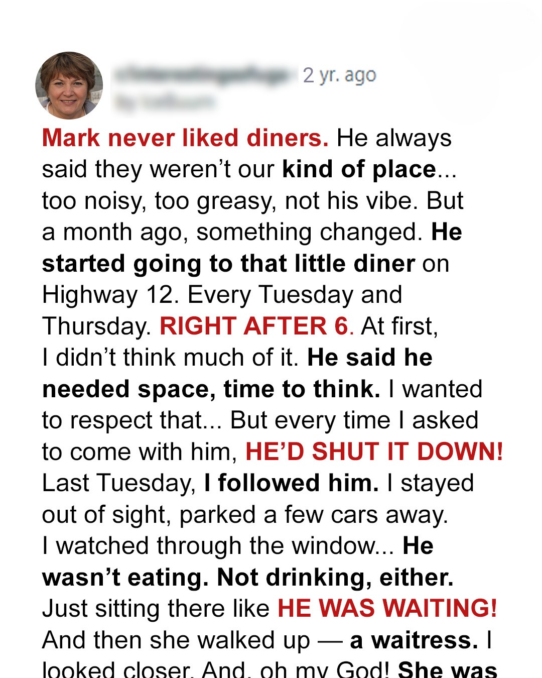 My Husband Said That Diner Wasn’t My Kind of Place, Until I Discovered He Wasn’t Going There to Eat — Story of the Day