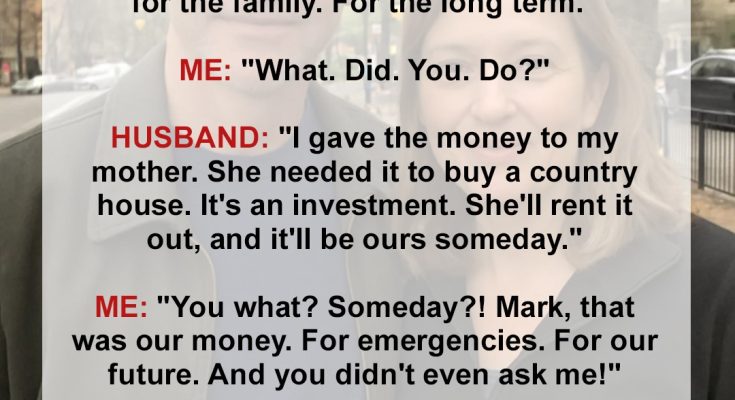 “Great,” I said. “So, maybe you can tell me why you emptied our joint savings account without so much as a word?”