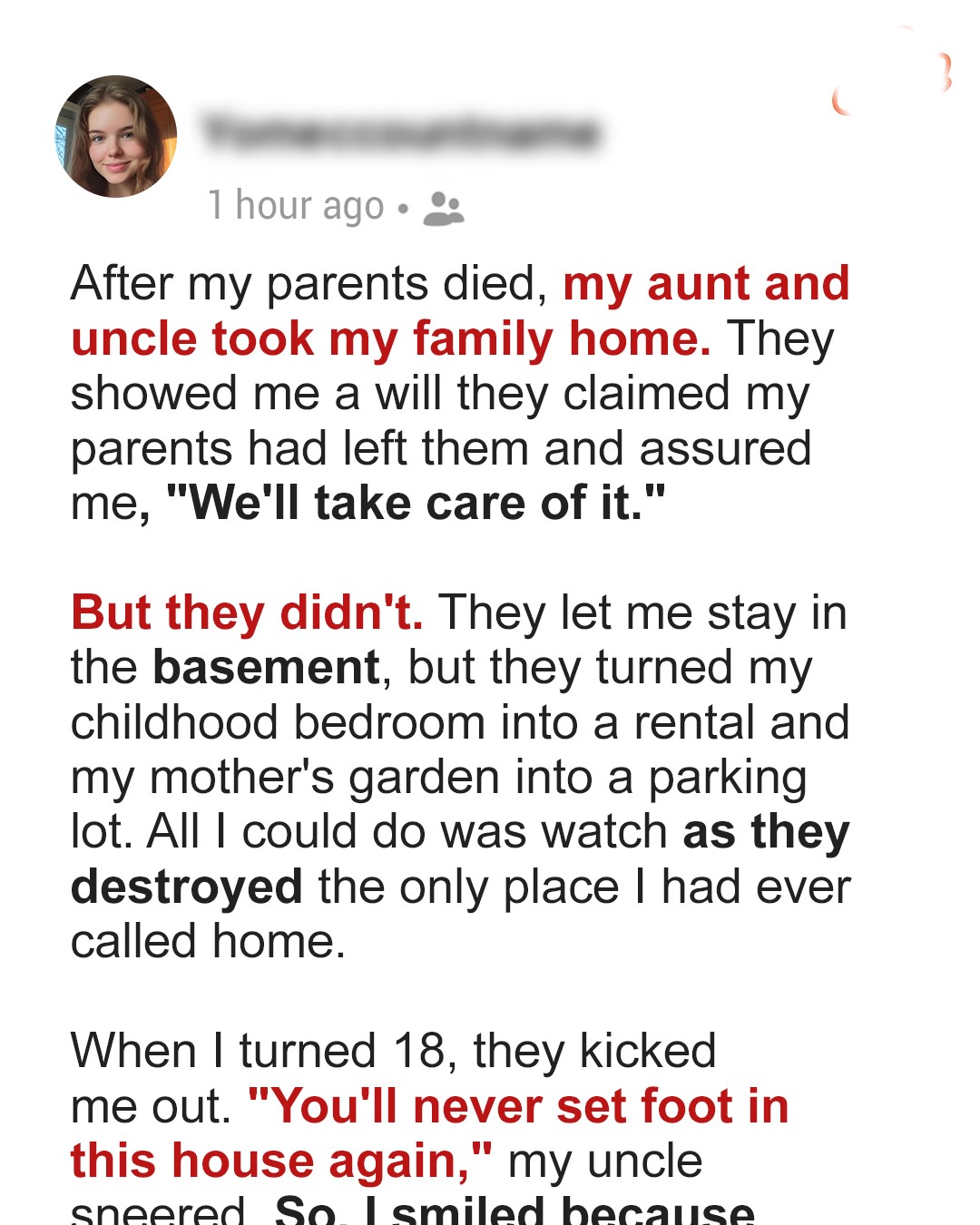 After My Parents Died, My Aunt and Uncle Took My Family Home and Let Me Live in the Basement—Years Later, I Discovered Their Big Lie