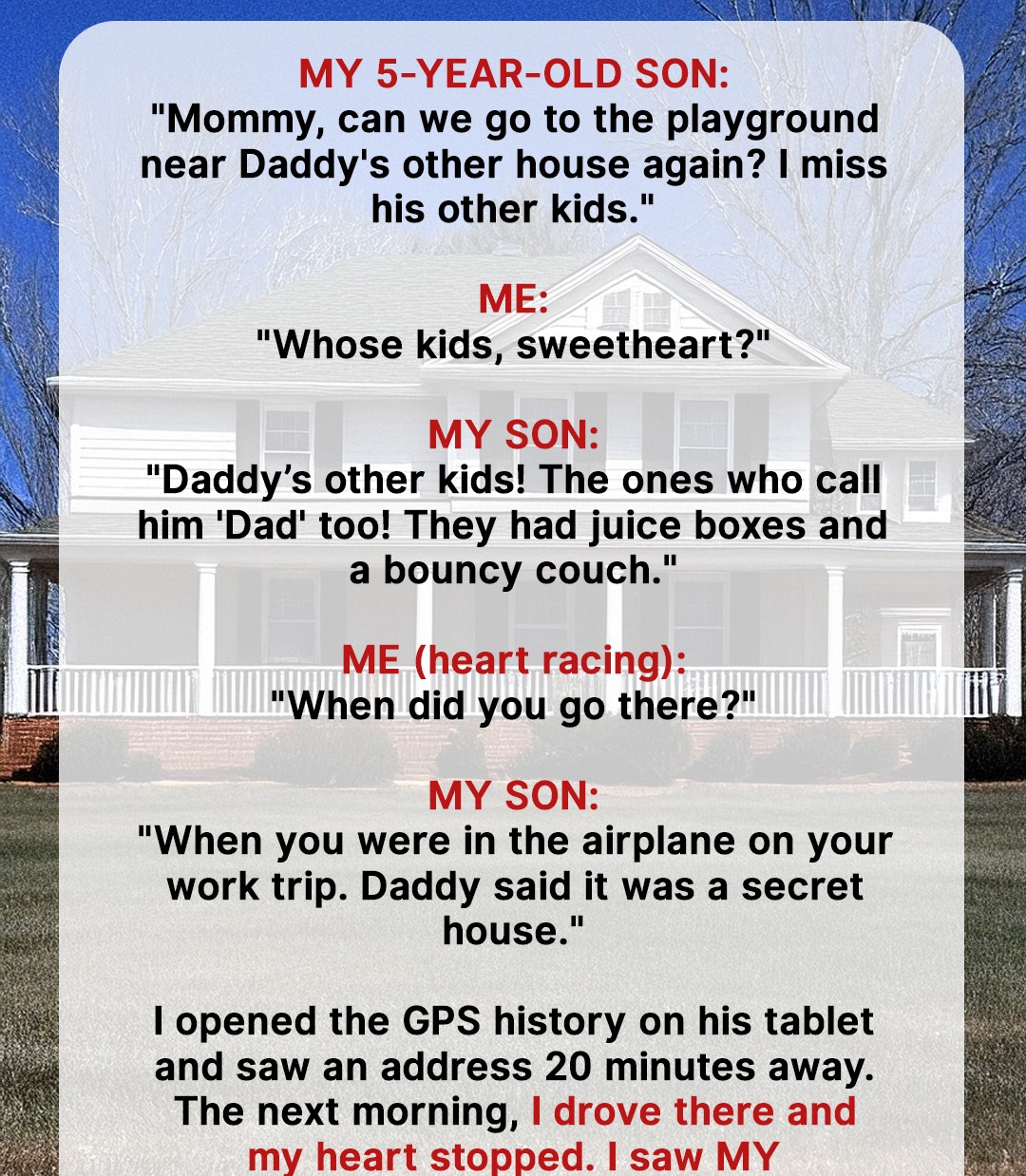 When my five-year-old mentioned visiting “Daddy’s other kids” at the “secret house,” my heart stopped. I thought I knew my husband completely, but what I discovered left me speechless. I never thought my husband could do something like this.It was a Tuesday. Just a regular Tuesday that started like every other day in our quiet suburban life.I picked up my son Tim from kindergarten, and he was his usual bubbly self.