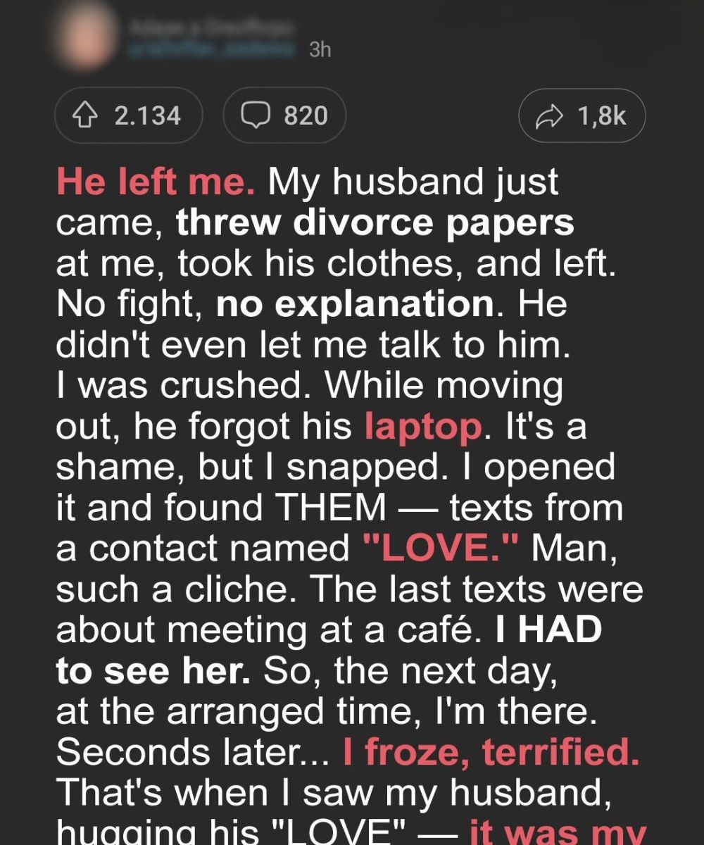 I couldn’t help myself. I had to know who she was. The next evening, I parked across the street from that café and waited. My stomach was in knots, hands clenched in my lap, watching every person who went in. About fifteen minutes later, Flynn walked up, wearing the gray sweater I’d bought him for Christmas. He looked lighter somehow, more at ease than I’d seen him in months. That hurt the most — that this version of him didn’t exist with me anymore.