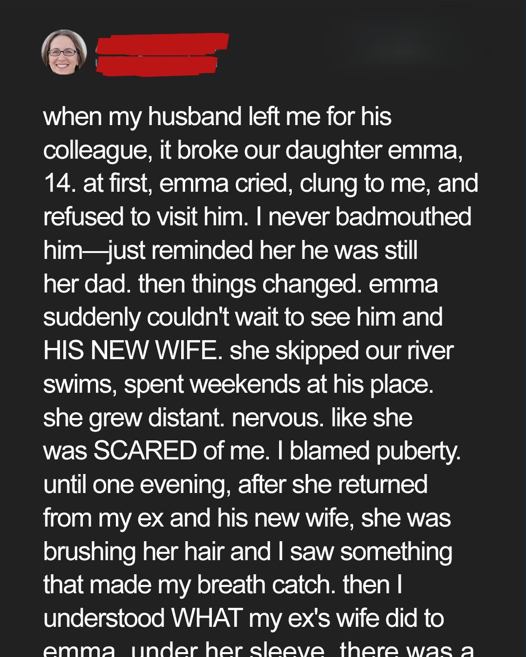 I never spoke badly about him, even when it hurt. Even when I wanted to tell her exactly what kind of man her father really was.