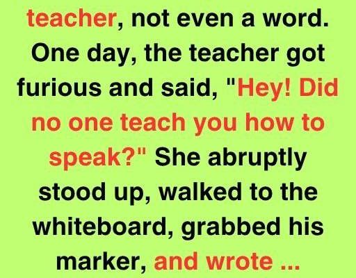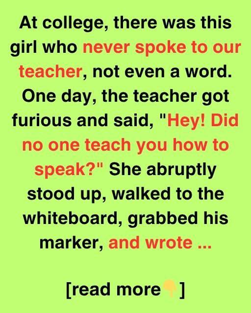 One college girl never spoke to our teacher. One day, the teacher yelled, “Hey!” Did no one teach you to speak? She suddenly rose, grabbed his marker, and scrawled on the whiteboard:Can speak. I chose not to. Not with those who think shouting makes them right.”Silence filled the room.No one moved. No matter how nervously he tapped his pen in class. We were trapped between awe and shock. The teacher stood there, red in the neck, wondering what to say.