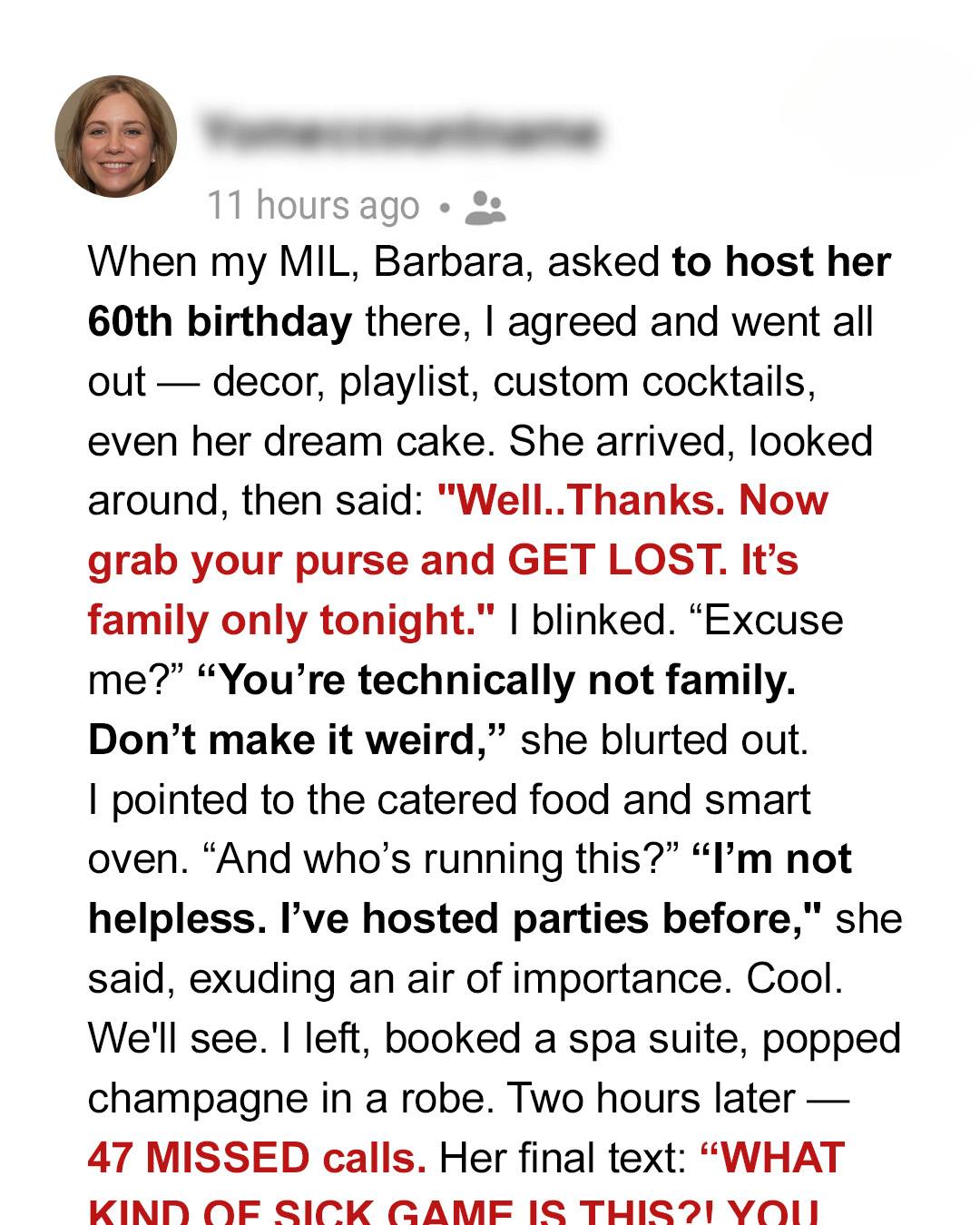 The final straw came when Elaine insisted Bill hug Kathy goodbye in front of everyone. Though he resisted, the pressure made him give in, and I snapped — leaving the party in tears. At home, Bill confronted me for leaving without a word, but when I asked why he went along with it, he said he didn’t want to upset his mom on her birthday. That only made the betrayal sting more.