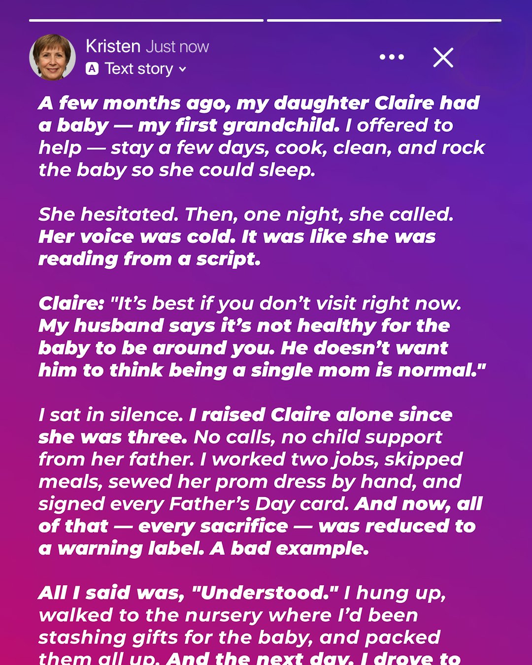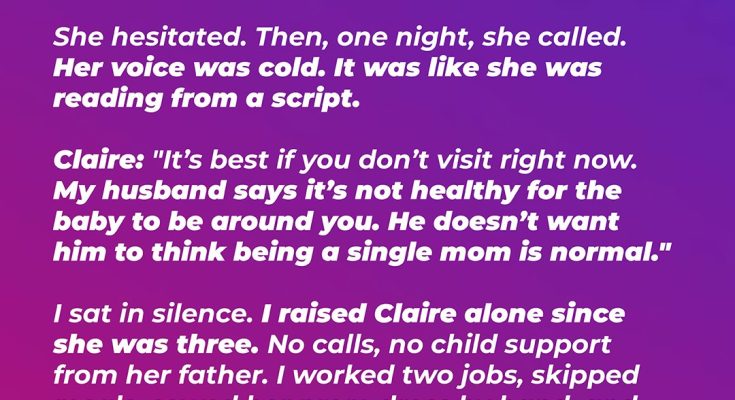 My heart is a permanent ache, a hollow throb where joy used to be. Every day is a struggle against the crushing weight of what I’ve lost. My daughter… she won’t let me see my grandchild. My beautiful, innocent grandchild. And the reason she gives me? It’s all because I’m a single mom.How could she say that? I poured every ounce of my being into raising her. There was no father in the picture, never really was. It was just us. I worked two jobs, sometimes three, scrubbing floors, waiting tables, anything to put food on the table, to keep a roof over our heads. We moved around a lot, always chasing cheaper rent, better opportunities. Her childhood wasn’t easy. I know that.