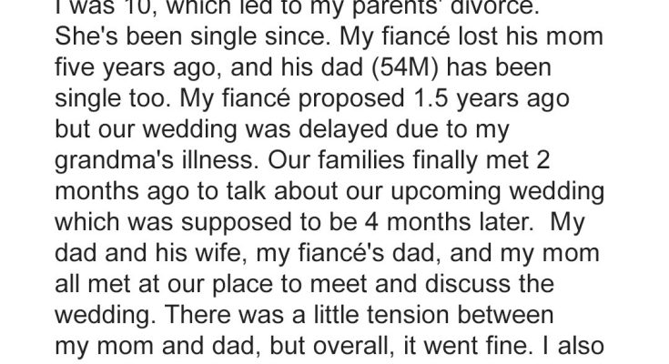 We invited everyone to our place to discuss the wedding plans over dinner. The guest list was small: my dad and his second wife, Sarah; my mom, who’d been single since her affair; and David’s father, Eric, a quiet widower.